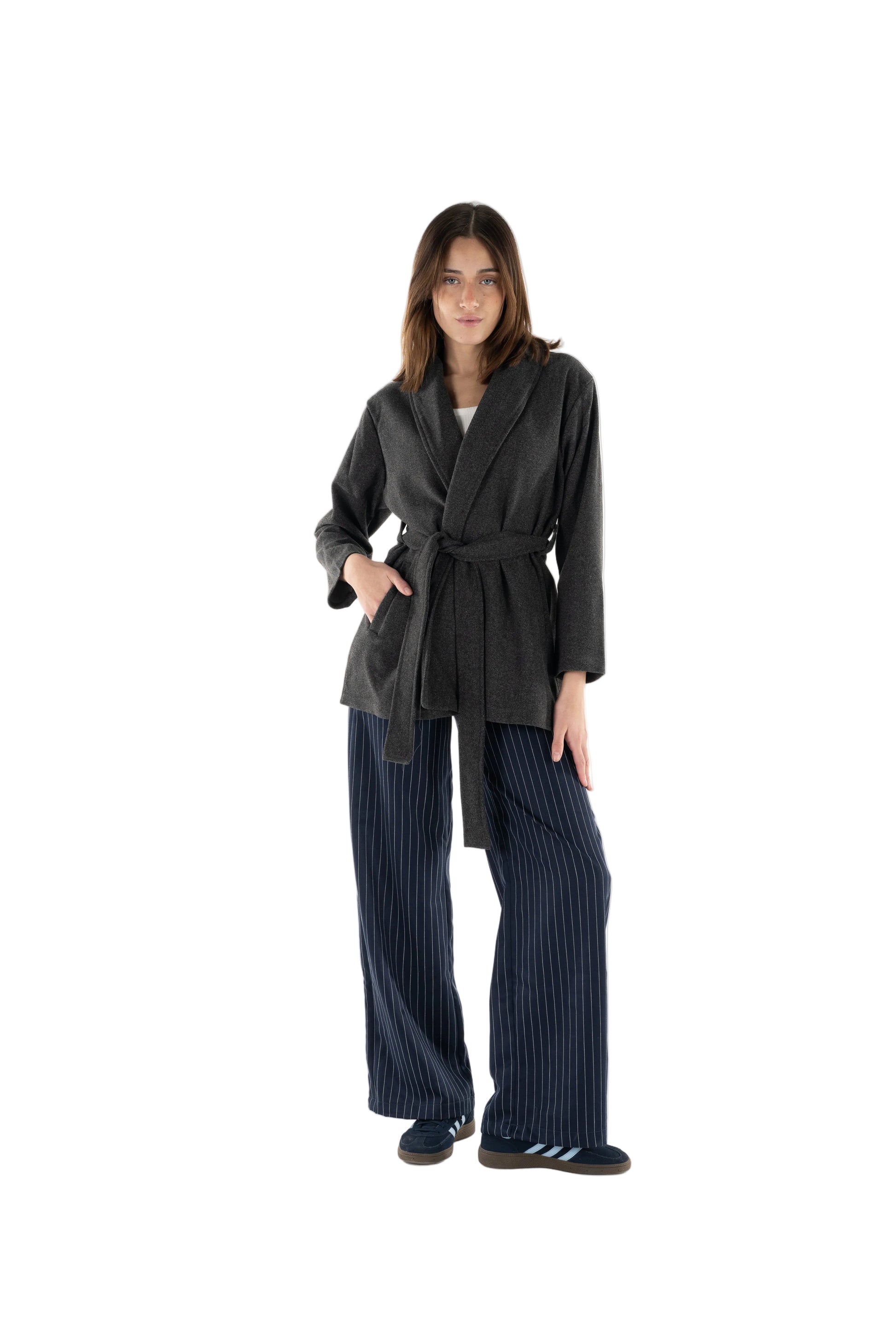 A cozy wool cardigan featuring a matching waist belt for an elegant effortless look